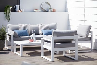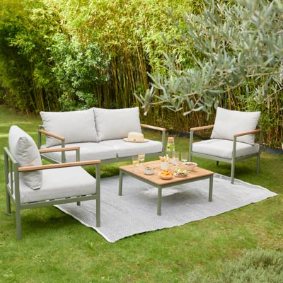Structure en aluminiumcoussins gris 100% polyester salon de jardin. Un style qui fait l'unanimité à la maison, où il est facile de s'y retrouver, d'y piocher de bonnes idées.
